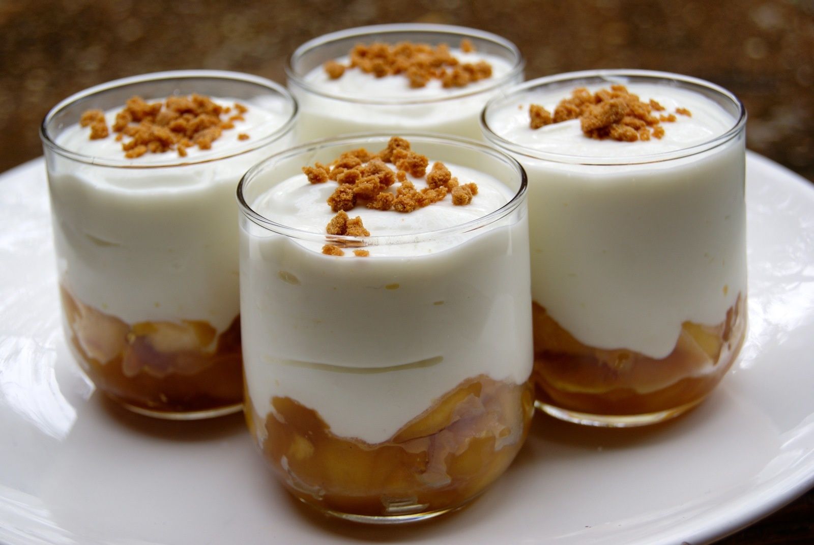 Dessert gourmand et léger : Verrine de fromage blanc, pommes caramélisées et amandes